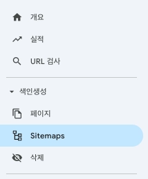 구글 서치 콘솔에 접속한 후, 왼쪽 사이드바에서 색인생성 하위 메뉴인 사이트맵(sitemaps)을 클릭합니다.